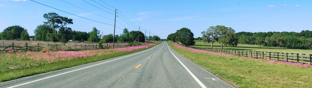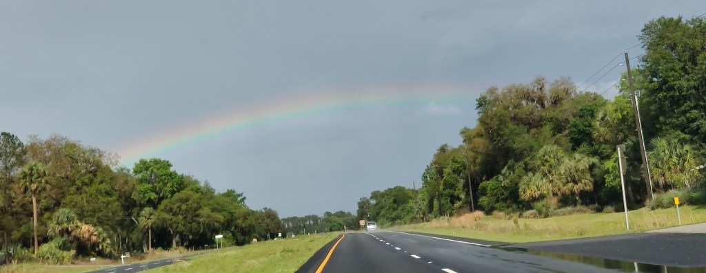 Well spring break is over but I love spring and all the beautiful flowers. We live in a rural area going from my home to Brooksville is lined with purple flowers. If you did not know purple is my favorite color. We went to The Villages the other day and also seen a rainbow. Poppy took some pictures to share.