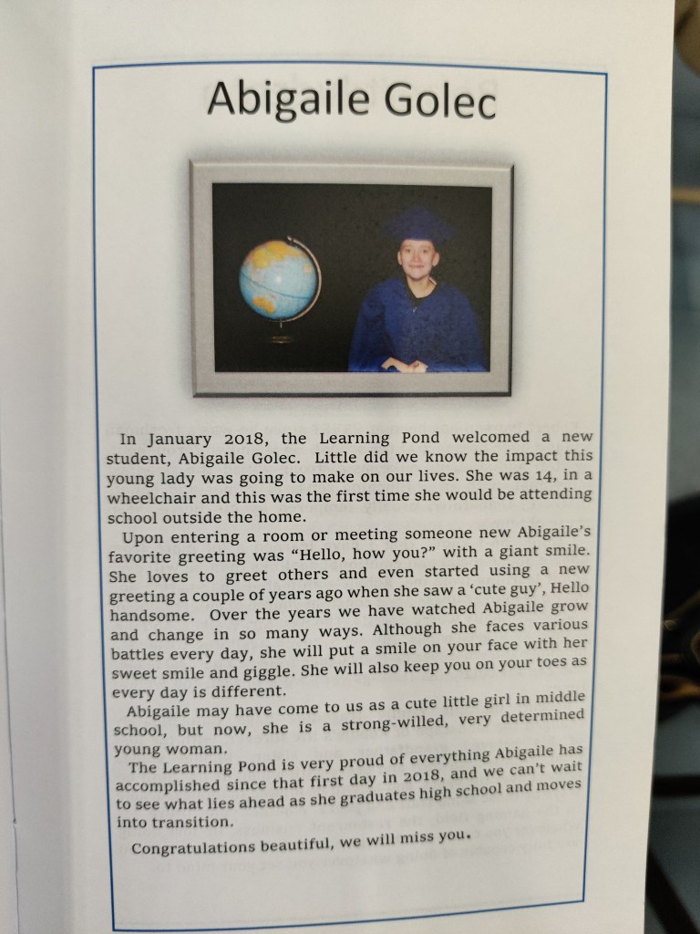 I go to a special school and guess what? I DID IT. I am officially graduated from High School (modified diploma). It was so cool. We had 5 people graduate and guess who was on the front page of the local newspaper. Yep me, check it out here. I though I was done and could just enjoy my life as the Princess, but guess what? Poppy woke me up the next morning and sent me to school. What gives I graduated?
