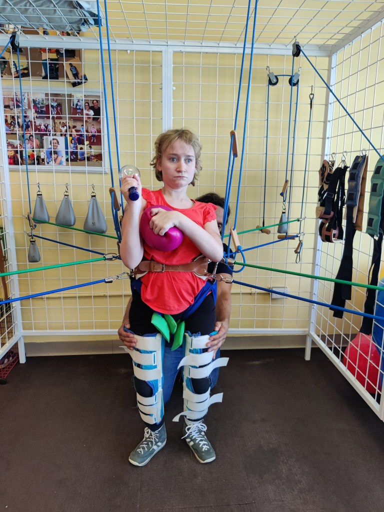 Poppy would come and pick me up after a few hours and I would go to therapy in Kissimmee FL. Not just any therapy but suit therapy. I did this therapy from 2011-2015 and it is very hard. It was because of this therapy I could walk for a short time with canes. I had some medical issues happen from 2014-2017 and I really lost most of my strength & skills. Poppy is happy about the progress but 3 hours of therapy per day for 3 weeks daily is a lot of work and I am not happy with him.