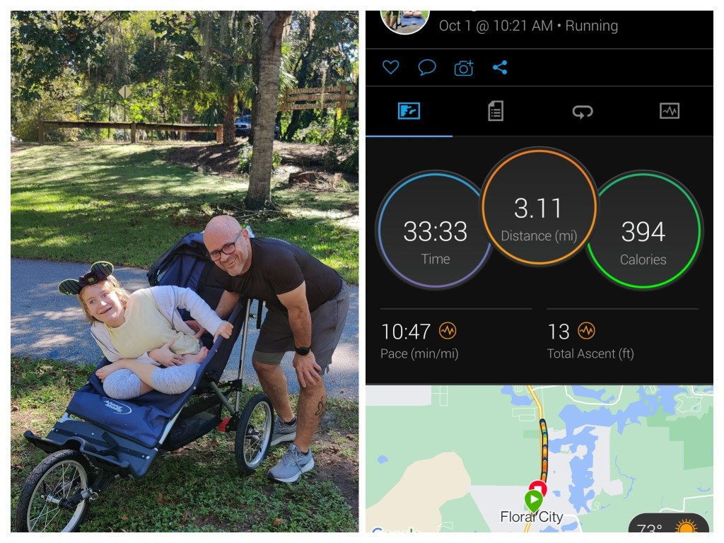 We started the month by running a virtual race for Dravet Syndrome Foundation. We raise just over $200 dollars. While it may be a lot to some people it all adds up. Poppy pushed me for 5K (3.1 miles) and it was so much fun . There is a picture of us and our time below. This is not even the most exciting news.