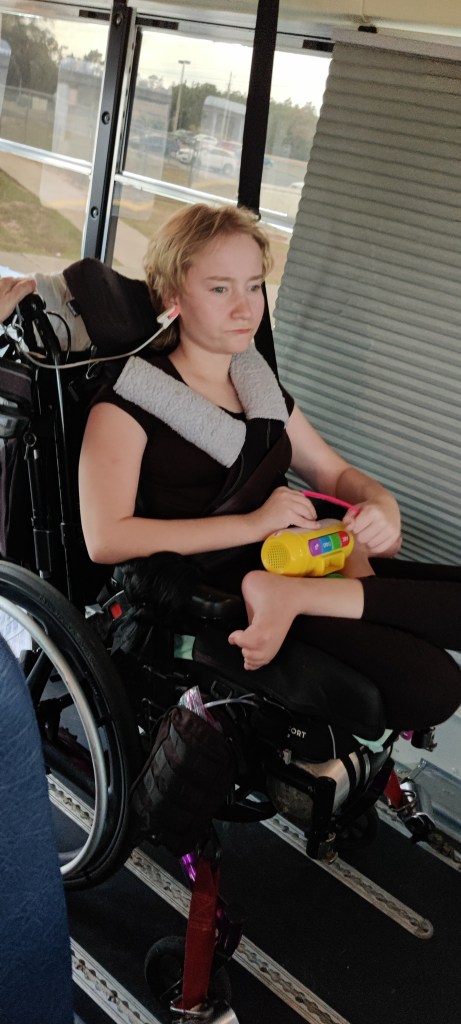 We finished off another week of intensive therapy in Kissimmee, Poppy has me going one week every two months. The therapist were really happy how I have maintained skills this month. I am working on standing independently with a walker. This my sound easy, but when I try and stand my dystonia moves my legs and it really can hurt sometimes.