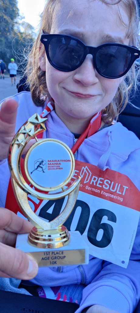 We started off the year running and we are not looking back. Poppy ran behind me for my first official race. I not only finish the race before poppy, but placed 1St for my age division, because who else would win a race but the princess. (Check out the trophy). I was rocking it while poppy was pushing it. I cannot wait to run the next race. Poppy said he would see what he can do but he has some training to do. I think he is getting old but he doesn’t know it.