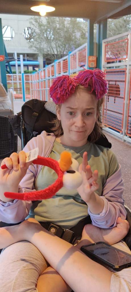 Poppy took said he was going take me to see my Boppy (Natascha) he just did not tell me it was going to be at therapy. I did see Natascha but I spent another week at therapy in Kissimmee and that is real work. I know poppy is very proud of me but the only thing I want to do after is sleep. I had a good week with my dystonia and walked over 500’ on Wednesday so I was not really excited about going back Thursday. On Thursday poppy took me to Sea World with Boppy (Natascha) for a few hours after therapy and we road roller coasters. I even went to Sesame Street and I go these cool Abby ears. I had poppy pick up Elmo ears for my buddy Mikey. Mikey was so excited when I gave them to him, I wish you could have seen him smile.