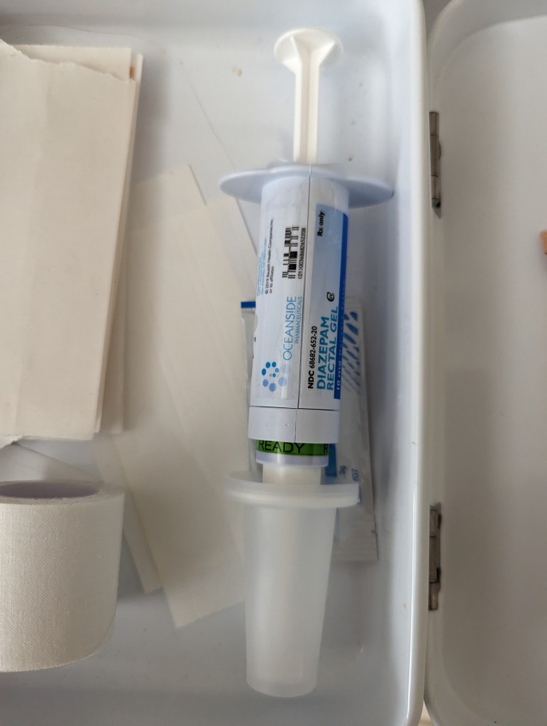 Every once in a while I have a super de duper of a seizure and go into “Status”. These seizures are they ones that make Poppy nervous are the ones that last over 5 minutes and I cannot come out of the seizure without medical intervention . After five minutes my body (brain) can suffer damage. When this happens Poppy gives me a form of vallum (Diastat) up my booty, I really hate it. Luckily FDA approved a new type of emergency medication (Valtoco) that he can give me up my nose. Either way it burns but it takes me out of my seizure. If these meds do not work, I get a trip to the hospital. Since I moved to Florida, this has happen twice. If it is really bad seizure i get a airflight to Orlando. Lucky I have not had to be airlifted. The problem with Diastat & Valtoco is they are addicting and can be very hard to get off these medications. I have not used the vallum since June 11 , 2022. I am hoping I can go a full year without a Diastat or Valtoco. this would be the longest time without a seizure this long in over 15 years.