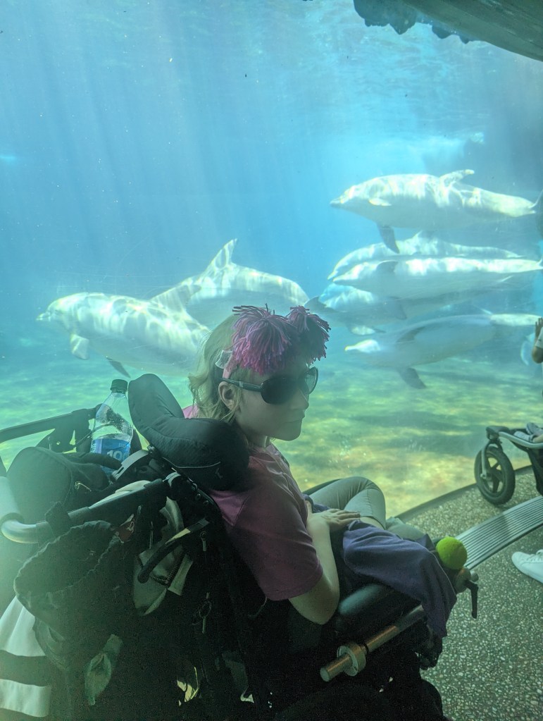 What is a girl to do without accessories so I have lots of Micky ears and sunglasses. Some things you can just never have enough. Have you ever gone to a theater and they have a warning about flashing lights. There is a reason. Flashing lights trigger seizures for some people with epilepsy. For most kids with Dravet Syndrome just going into the sun can trigger seizures. To prevent seizures from starting, I wear sunglasses all the time outside to dim the sun. Sometimes when the sun is rising or setting when we are driving the sun will flicker through tree line. I have curtains in the back of my van to block this out. My school bus also has a shade specially installed to block out the sun. In the past some of seizures were really bad and a lot of them required emergency medication to stop them.