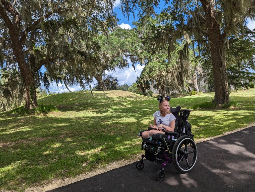 While it has been very hot, we did a few days at the parks in Orlando. We went to Disney Magic Kingdom and Hollywood Studios,. We even celebrated my grandma 80th birthday at one of the Animal Kingdom resorts. Thank you Boppy. We also went to Sea World and Busch Gardens. I had a lot of fun. The last time we went to Busch Gardens I started getting to hot and we left earlier than I would have liked, but I did not have a seizure, which is all that matters. We also went to Crystal River Archaeological Park. It is really cool. It has burial mounds, giant mounds that were stages and all kinds of artifacts. Part of the park was a museum so we stayed inside to keep cool for part of our tour.