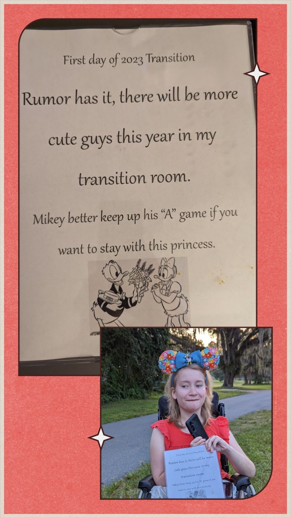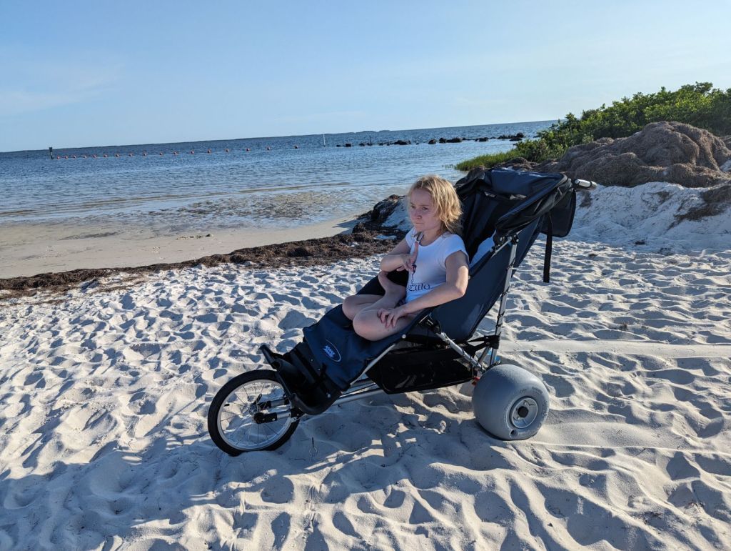 One thing about living in Florida, is we have beaches but sometimes it is not easy to get around. Poppy found this cool place who gave me a set of wheels that fit my running wheelchair. It is so cool going on the same. We even can get right up to the water and watch the sun set.