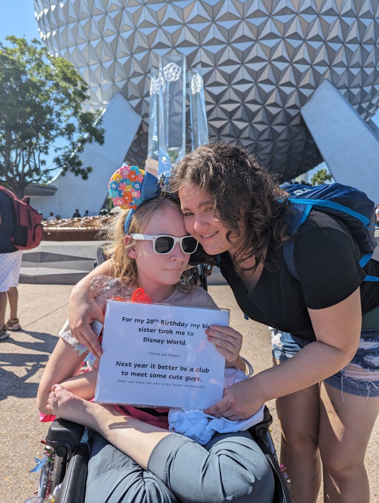 Now in my house we have a birthday week and it ends 7 days later on Boppy (Natascha) birthday. She also took me on her birthday to Magic Kingdom. While we met a few other cool people like Capt Jack Sparrow, Peter Pan and Airele. There is no one as cool as Natascha for taking me with. And guess what poppy made a sign for her to about how she only thinks she an adult at 25. Magic Kingdom is my favorite because we get to ride cool rides like “It’s a Small World”.