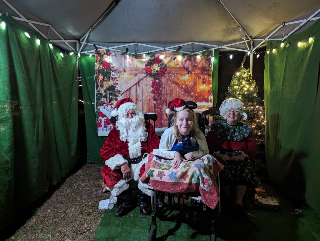 We also we and seen Santa at Ft Cooper State Park. They have the trails lined with lights and decorated trees. Poppy brought me a snack and we drank hot cocoa. We finished the day with a picture with Santa Clause. He said I am getting to old, he better not bring me coal.