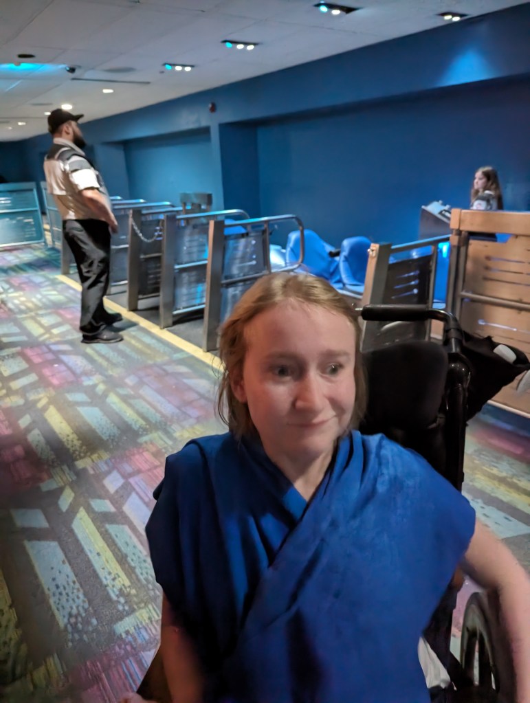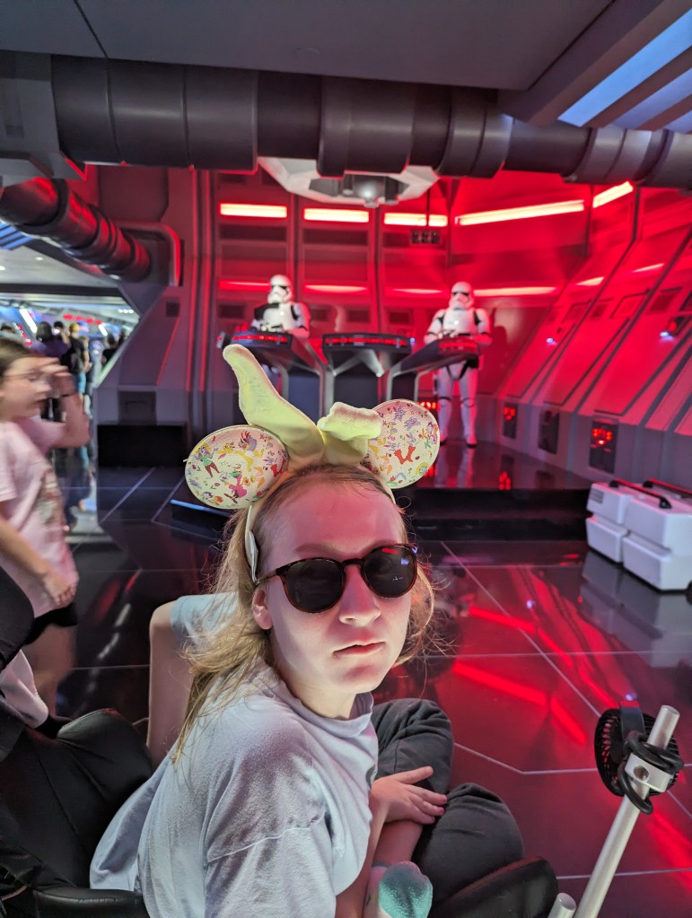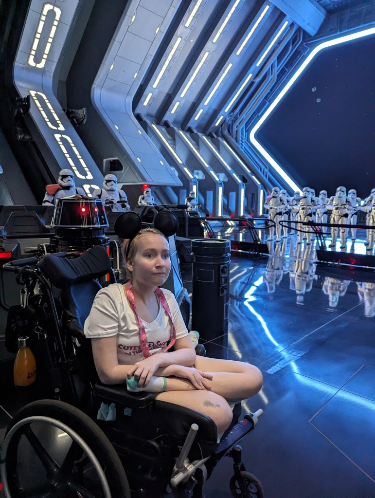 Something I noticed with Star Wars area. There is not Princess of the Darkside of the Force. I applied for the position; we went for two interviews but I was not chosen. When that failed, I tried to be a piolet for the Millenieum Falcon. It was not pretty. I will stick to my wheelchair.