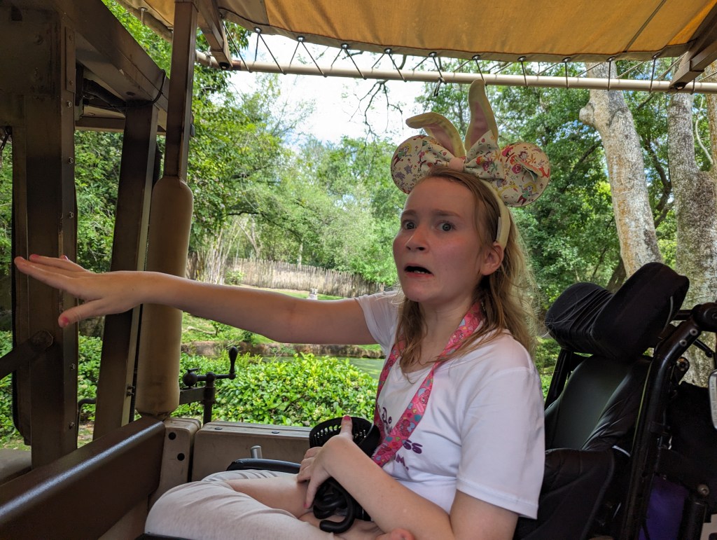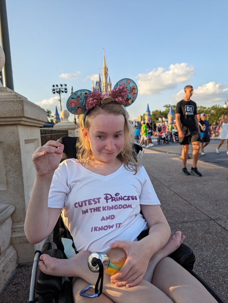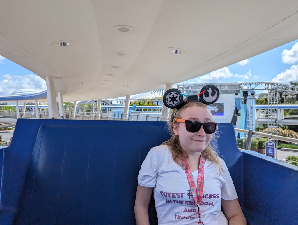 We rode two roller coasters in one day. When we got to Magic Kingdom on day we went on Tron in the morning and in the afternoon, Poppi took me on Space Mountain. I am not as much of a fan. Because my legs do not work like everyone else’s I had to sit in the front. I really do not like that wind in my face. I am glad I did it but I do not think I will again. We did ride Tron in the morning and I really liked it. Right now, they only let you go on once per day. That’s pretty cringe if you ask me.