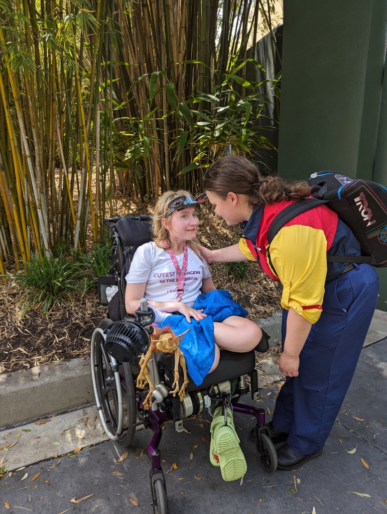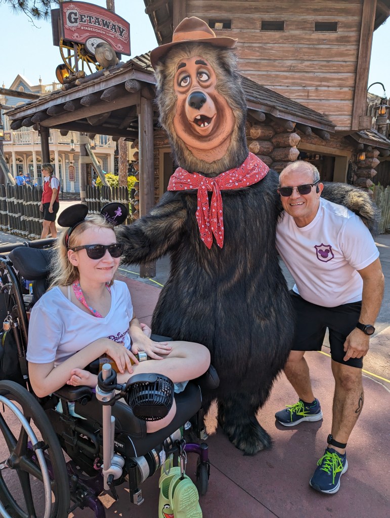 It is starting to get really hot outside, and I know my time for going to Disney is going to come to an end for a few months. Heat is not nice to people with Dravet. I have a hard time controlling my body temperature and can have seizures. So to help keep me cool Poppy had MS Marge make coordinating shirts for us. I know mine is accurate.