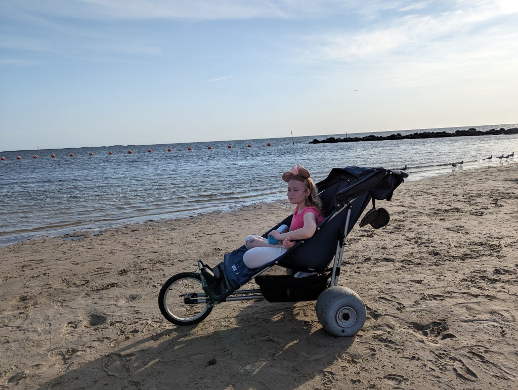 Summer time means poppy got out the beach wheels so we can watch the sunset.