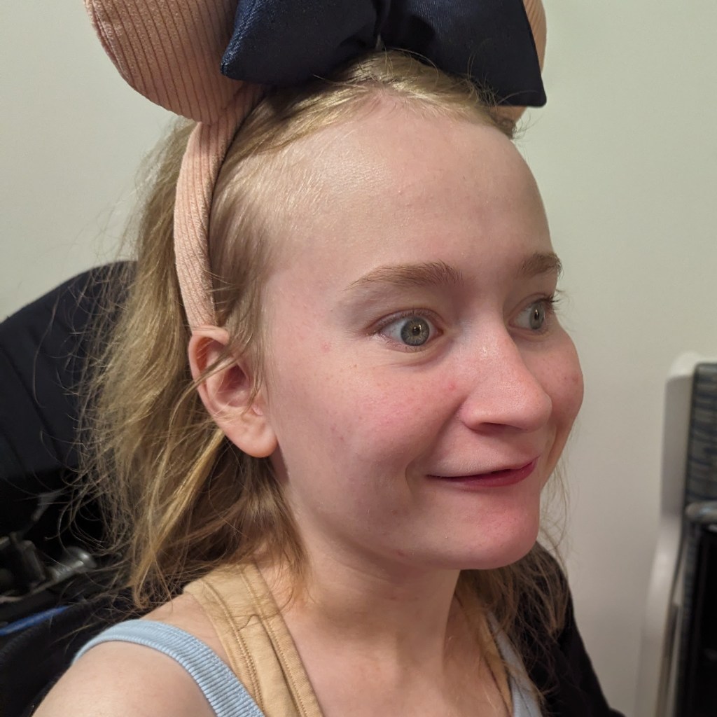 This month started off really rough. My regular wheelchair was not at home and poppy was using the transfer chair to bring me in the house. When it started pouring I went into a seizure and fell out of the chair. I put a big bump on my head. We went to the hospital to have it looked at. Poppy said he knew I was ok when I started blowing sugars at the cute nurse.